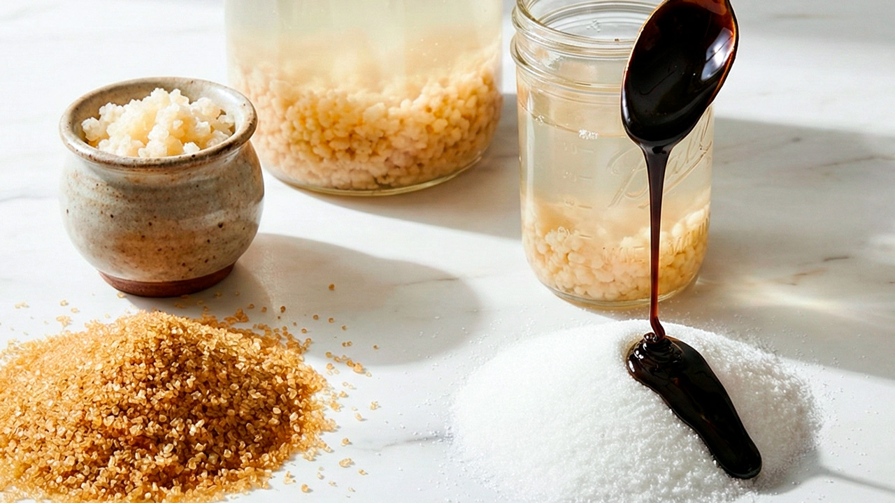 Zie de suiker niet als ingrediënt voor jou, maar als brandstof voor de kefirkorrels (of de SCOBY).