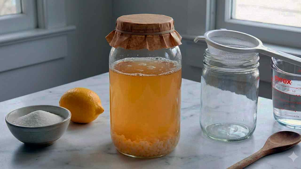 - Stap 1: Maak je waterkefir zoals gewoonlijk (24-48 uur).